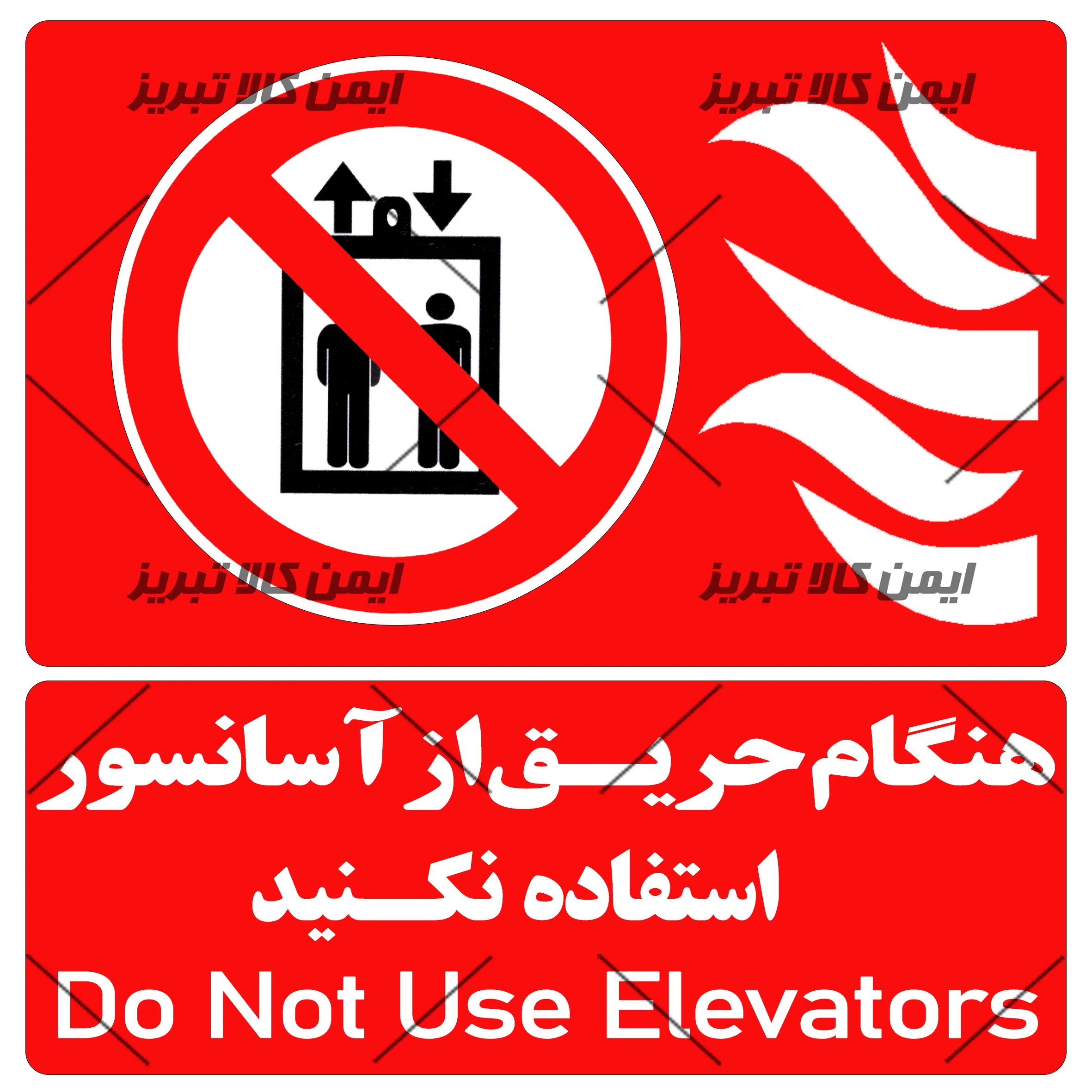 هنگام حریق ازآسانسور استفاده نکنید یک تجهیز مهم و حیاتی در صنعت و سایر حوزه‌های کاربردی است. این برچسب به منظور راهنمایی جهت استفاده درست از آسانسور هنگام آتش سوزی و تأکید بر ایمنی و سلامت فرد استفاده می‌شود. با استفاده از این برچسب ، شما قادر خواهید بود مناطق خطرناک را به درستی مشخص کرده و افراد را از ورود به آن‌ها منع کنید. این برچسب به عنوان یک ابزار کارآمد و حیاتی در جلوگیری از حوادث و صدمات در محیط کار و سایر مکان‌ها شناخته می‌شود.